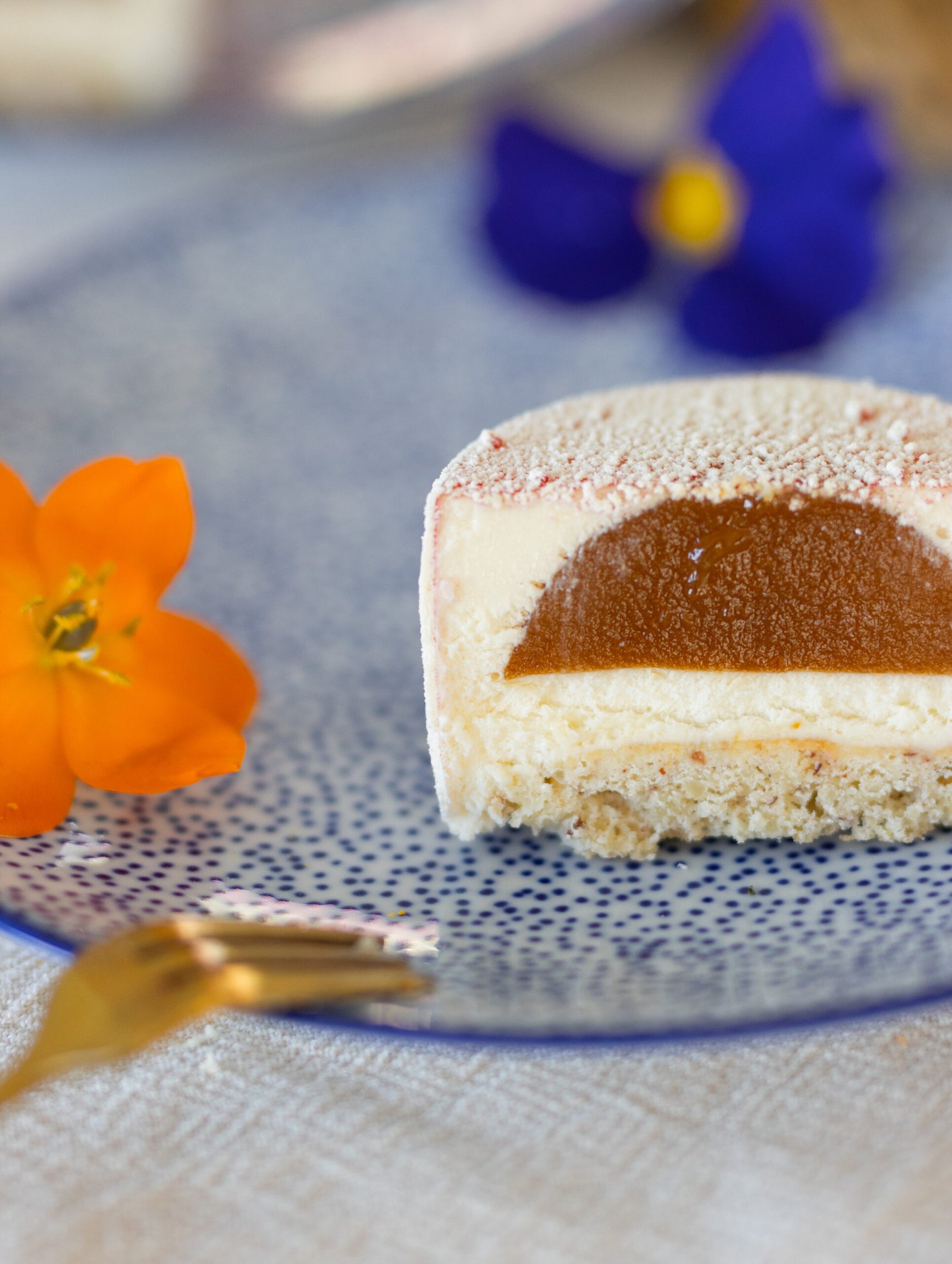 Frühlingshaft & blumig – Dieses Törtchen vereint zartes Jasminmousse mit fruchtigem Aprikosenconfit. Eine leichte und sanfte Kombination, die Frühlingsgefühle weckt und Lust darauf macht, das Törtchen draußen zu genießen.